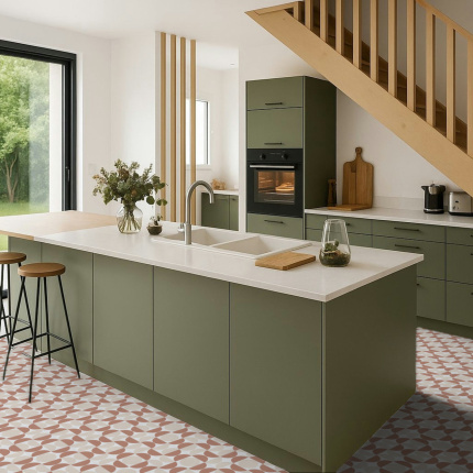 Le tapis sur mesure Atelier Bauhaus Terracotta apporte une touche graphique assumée à votre intérieur. Son motif géométrique, inspiré du courant Bauhaus, joue avec les cercles et demi-cercles, dans une palette de terracotta et crème ultra tendance. Le résultat : un look délicatement vintage et résolument contemporain, parfait pour structurer un espace avec style. Conçu en PVC souple et pensé pour un usage quotidien, ce tapis est aussi beau que pratique. Sa couche de finition protectrice résiste aux éraflures, aux taches et se nettoie en un clin d’œil, il est aussi doté d’un revêtement antidérapant. Idéal pour les pièces de vie animées comme la cuisine ou l’entrée. Réalisé sur mesure, avec une découpe au carreau près, il s’adapte à toutes vos envies.