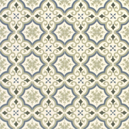Tapis sur mesure Vinyle - Effet carreaux de ciment arabesques - Vert et bleu