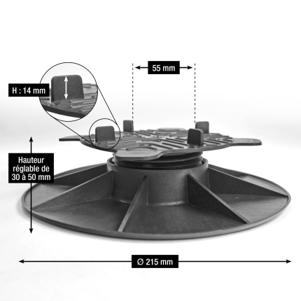 Terrasse composite Accessoires Plot pour lambourde - Larg. max. 55 mm - Hauteur de 3 à 5 cm